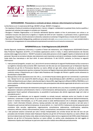 REGOLAMENTO E INFORMATIVA SULLA PRIVACY